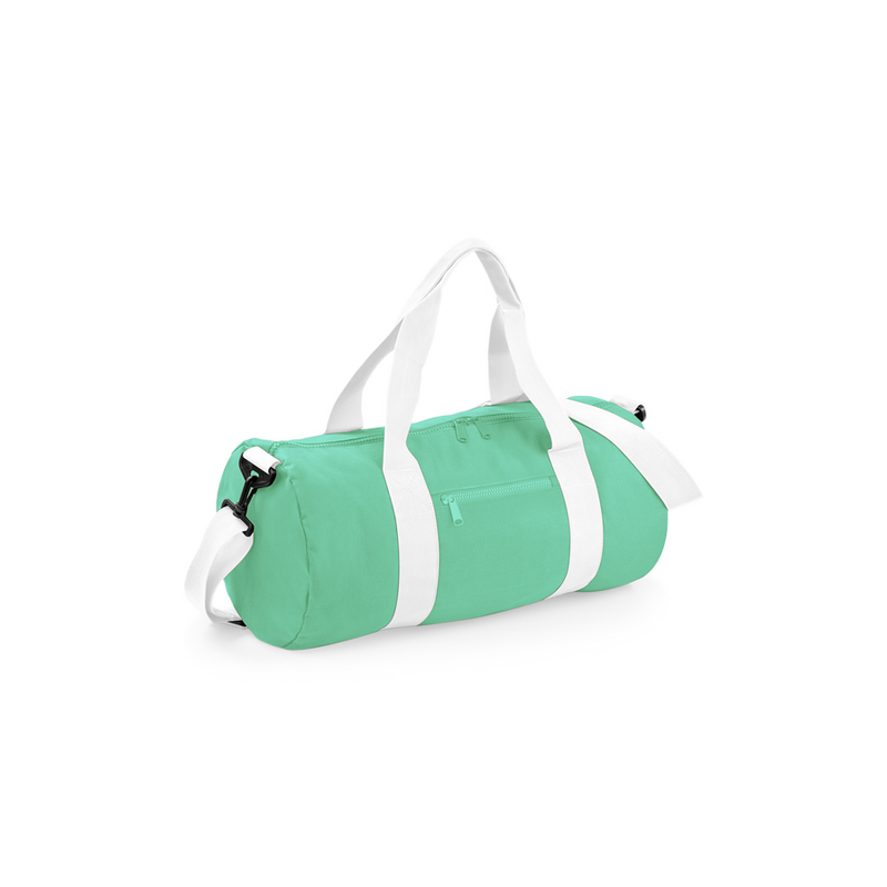 Sac baril original en polyester, pratique et polyvalent : compartiment principal et poche étui zippés, poignées en toile, bandoulière amovible ajustable, et étiquette détachable TearAway pour personnalisation facile.